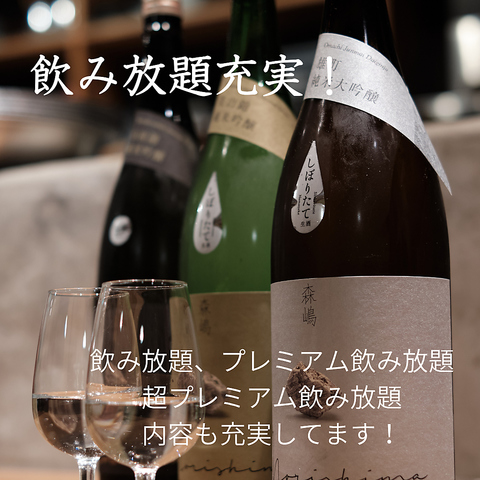 飲み放題の種類が豊富で、通常飲み放題で40種類以上、プレミアム飲み放題で55種類以上と大満足間違いなし!