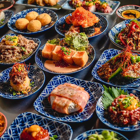 名物料理はもちろん、大人気『生』ポテチ、サーモンレアカツ、炙り焼豚、アテ巻きも入ったコース!2時間飲み放題付きで贅沢内容となっております。