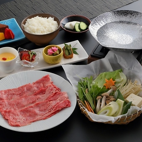ランチタイム限定のちょっと贅沢な御膳です。彩り豊かな前菜盛合せから始まり、きめ細やかな肉質の黒毛和牛上すき焼きをご堪能いただけます。すき焼きは、当店の特製割り下と肉職人の技が光る逸品。食後にはデザートと香り高い珈琲で、ゆったりと至福のひとときをお過ごしください。