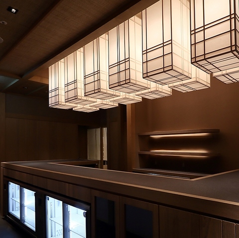お店に入るとすぐに、お客様を洗練された上質な和空間がお迎えします。落ち着いた色調と間接照明が織りなす空間は、日常を忘れさせるような静謐で心地よい雰囲気。細部にまでこだわったデザインが、お食事への期待感を高めます。大切な方との会食や記念日を彩る、心ゆくまで寛げる和の趣きを存分にご体感ください。