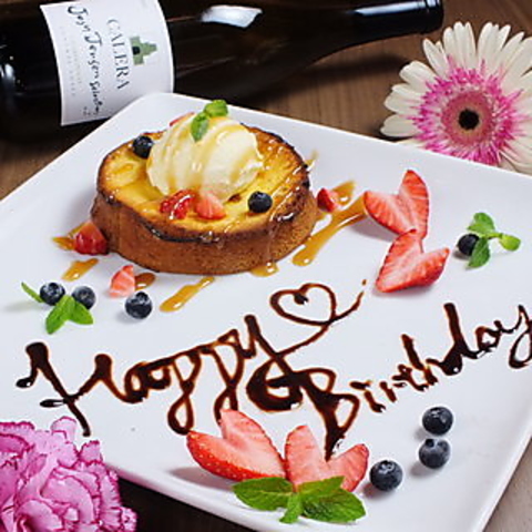 お客様の大切にしている記念日を、メッセージプレートでお祝いいたします。※事前のご予約がスムーズです。