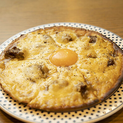 ビスマルクピザ?いえ、当店はランチ時の人気メニューカレーをふんだんにのせて焼き上げました。半日に煮込まれたやわらかお肉とチーズのマッチングはこの上ない組み合わせです