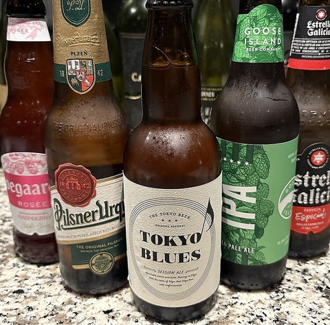 ビールの種類も豊富。様々な国のクラフトビールを常時10種類以上取り揃えております。