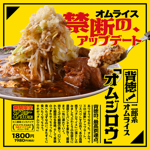 背徳の、最高到達点。二郎系インスパイアオムライス『オムジロウ』が2/1(日)~4/30(木)限定で新登場!