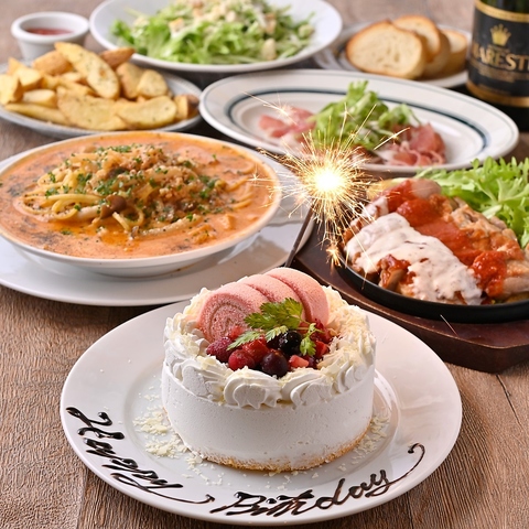 サプライズならお任せ♪お誕生日や記念日などのお祝いに最適なプランをご用意しております!!【☆当日予約大歓迎☆】先着3組様限定でメッセージ&花火付き「特製デザートプレート」を無料プレゼント♪その他にも豪華アニバーサリーケーキをお手頃価格でご用意致します!