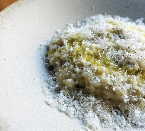 厳選した、イタリア産のゴルゴンゾーラをたっぷり使い、絶妙な硬さに炊かれた米が一体となり濃厚な中に軽さのある女性に一番人気のリゾットです。口一杯にチーズの風味が心地よく広がります。ご来店の際は是非ご賞味下さい。