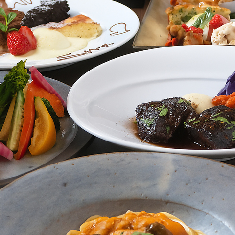 シェフ厳選の旬の食材による贅沢なおまかせコース。記念日やお祝いに普段とは違った素敵な時間をお過ごしください…