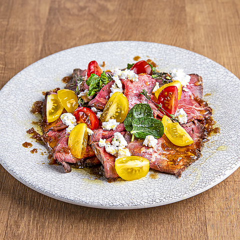 当店のローストビーフは全て自家製で仕上げた絶品ローストビーフ!アスロク名物のこぼれローストビーフや、片面焼きステーキ、肉寿司などご用意しております。一風変わった茶美豚のローストポークなど、様々なローストビーフとチーズのマリアージュを堪能して下さい!ローストビーフや生ハムの食べ放題も人気です☆★