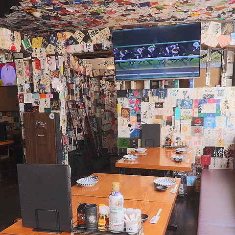 店内には、日本酒ラベルが4000本以上分貼られております!