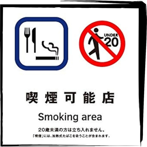 紙タバコ・電子タバコ、どちらもお席で喫煙可能です!(20歳未満の方はご入店いただけません。)