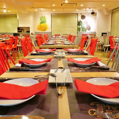 宴会利用におすすめ20名様以上が気持ちのいいレイアウトでご用意可能です、ゆったりした空間でシュラスコを