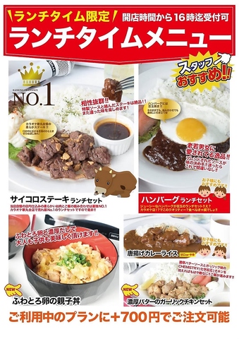 お好みのランチを食べて、昼カラを楽しみましょう