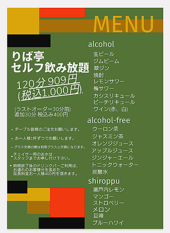 ビール、ハイボール、レモンサワー等ソフトドリンクも充実でまさかの120分(LO30前)1000円で超お得