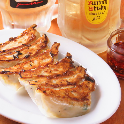 中ちゃん自信作!キャベツを多めに配合した手作り餃子は野菜の甘味・コクがあり美味!是非酢コショウで味わってみて下さい♪