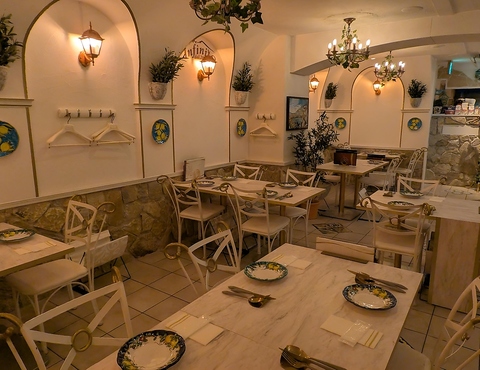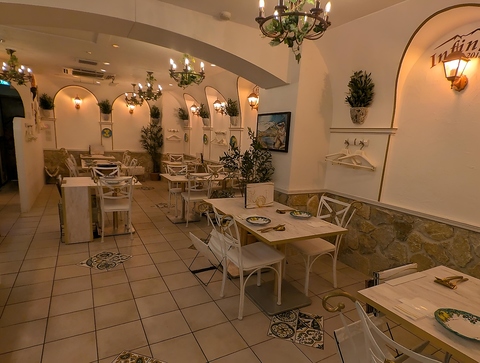 白を基調としたアマルフィ海岸のレストランをイメージした店内♪