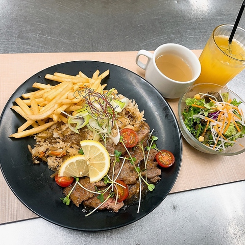 豪快!ステーキ肉飯 (スープ付)