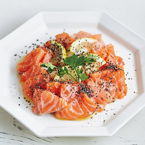 新鮮なサーモンをさっぱりと仕上げたカルパッチョ。特製ソースで、ほどよい酸味と旨みをご堪能ください。