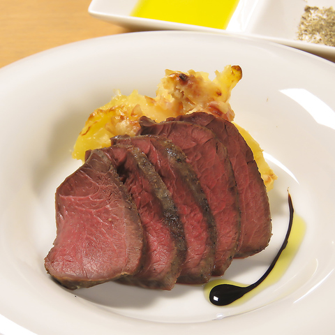 和牛うちもも肉で作ったヘルシーな一品。低温真空調理と絶妙な火加減でおいしさを閉じ込めました。口の中でとろけるあぶらが最高です!赤ワインとの相性はバッチリ♪ワイン片手に昼飲みもいいですね!