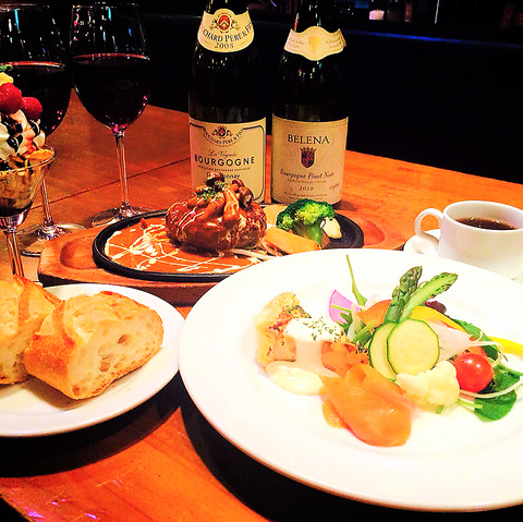 この価格で大満足!自家製ドレッシングの前菜、選べる手作りデザート、ドリンクまで付いた贅沢セット! 鉄重ハンバーグはデミグラスや豆乳ガーリックなどの5種のお好みのソースから!デザートはお店で焼いたチーズケーキやクレームブリュレなどから選べます☆ドリンクもアップルジュースやコーヒー、紅茶などから選べるお得な内容です♪