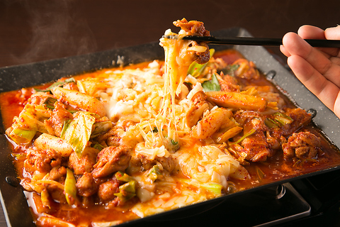 女性にも人気のチーズタッカルビ当店の一番人気です!特製タレとトロトロチーズは絶品です。ご注文いただいてから料理しますので、熱々でのご提供となります。お客様の好みに合わせて辛さやトッピングを追加することが出来ます。(中)1580円、(大)2880円ご用意しています!ご注文は2人前から★