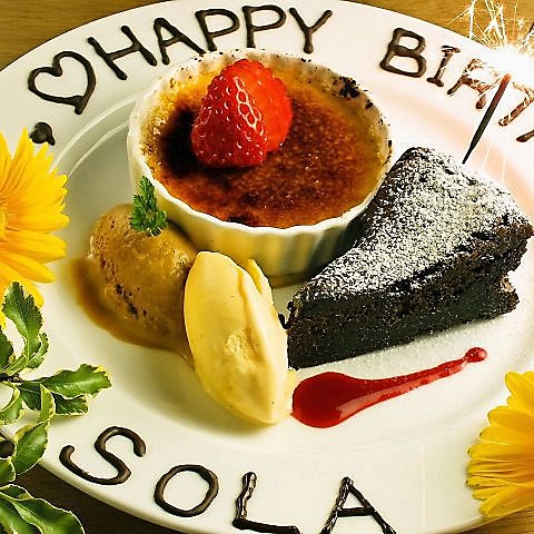 無料のプレートからグレードアップした豪華サプライズプレート♪店内BGM付でみんなでサプライズ演出です!