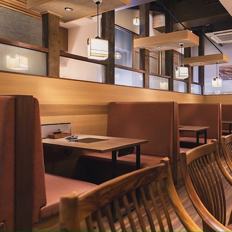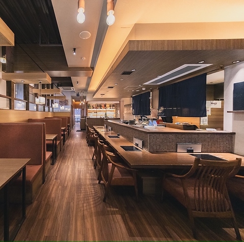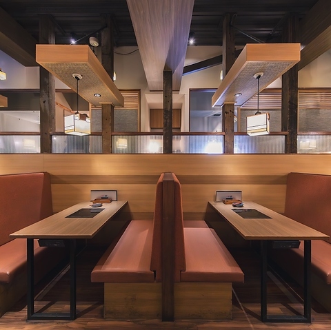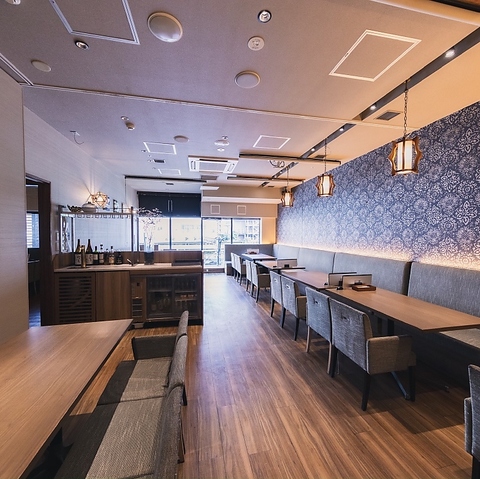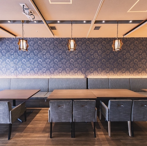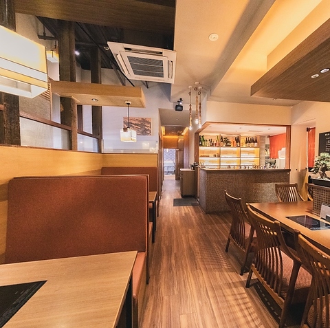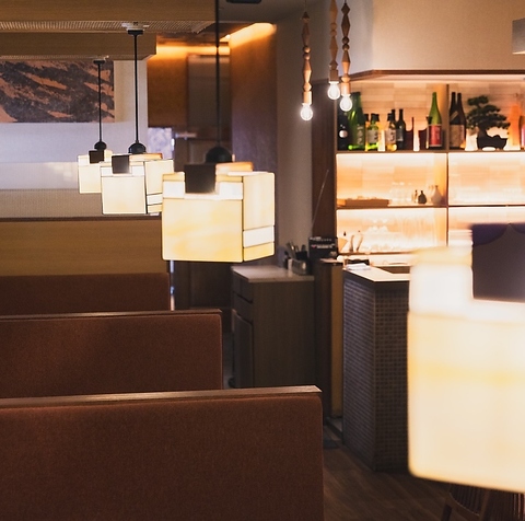 寛ぎの時間を演出する柔らかな照明と様々な席。皆様のご来店お待ちしております。