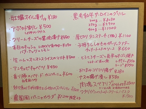 本日のオススメや気まぐれメニューを多数ご用意!いつ来ても様々なメニューをお楽しみいただけます♪充実した日替わりメニューからぜひお気に入りの1品を見つけてみてください!!