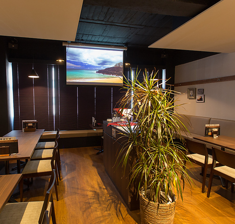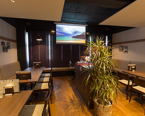 広々空間でワールドカップ観戦はもちろん!婚礼2次会でのDVD上映などもすべてのお席から眺めることのできる店内。貸し切りパーティをぜひお待ちしております!感染症対策を万全に、ご安心してご来店いただけるように対応しております。