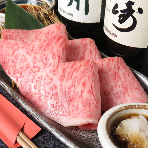 柔らかい赤身の中に、きめ細やかで風味ただようサシが入った見事な霜降りが特長の佐賀牛。ステーキやすき焼き、しゃぶしゃぶ用の肉としても重宝される、とろけるような味わいを、贅沢に焼肉でお楽しみいただけます。炙るようにサッと焼き上げ、特製のタレやおろしポン酢と合わせて、至福の味わいをお楽しみください。