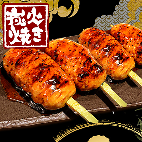 炭火でじっくり丁寧に焼いた自慢のつくね。お味は【タレ・塩・辛味噌】 の3種類から味をお選び下さい。1本242円(税込) 2本462円(税込)