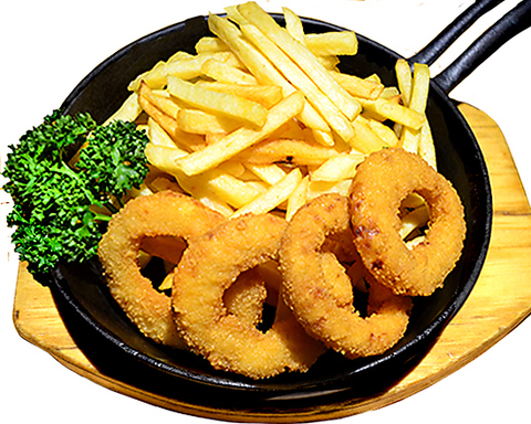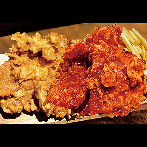 伝説の唐揚げ6枚(2種×3枚)+オニオンリング+フライドポテト) ご注文の際は唐揚げの味を2種類選んで下さい。(キングオブチキン・ヤンニョムチキン・八丁味噌・究極すぎるのり塩・てりやきマヨ・タルタルチキン南蛮・ユーリンチー・スイートチリ)