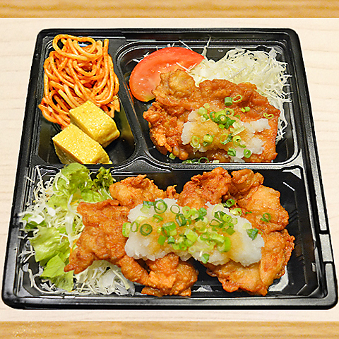 お弁当やうどんメニュー、【唐揚げBOX】に追加としてご注文できます