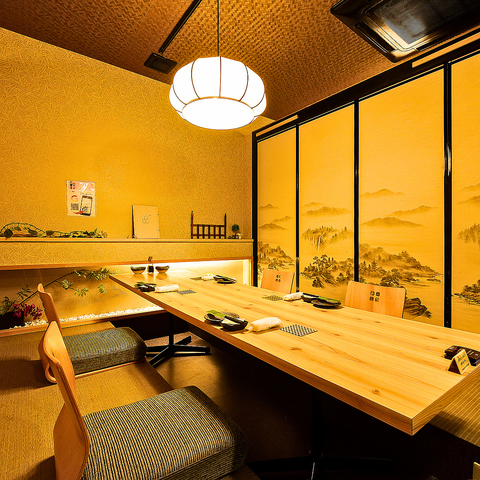 【落ち着いた雰囲気でゆったりお食事を】当店は掘りごたつ個室やテーブル席の個室もご用意しております。地下の宴会上では貸し切りでの対応も可能!ゆったりプライベート空間づくりに努めております。
