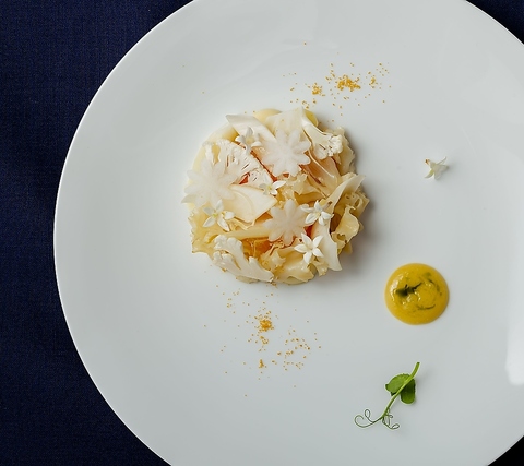 旬を迎える食材と地元の恵みを、絵画のように見た目にも美しいフレンチに仕上げたフルコース。その土地らしい食材を生かし、魅力を伝えたいとう思いで、シェフが物語を紡ぐように仕上げる料理の数々をご堪能ください。