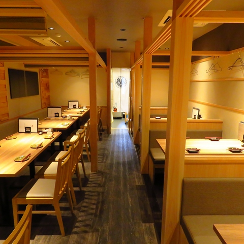 4~6名向けテーブル席。暖簾で仕切られた半個室空間