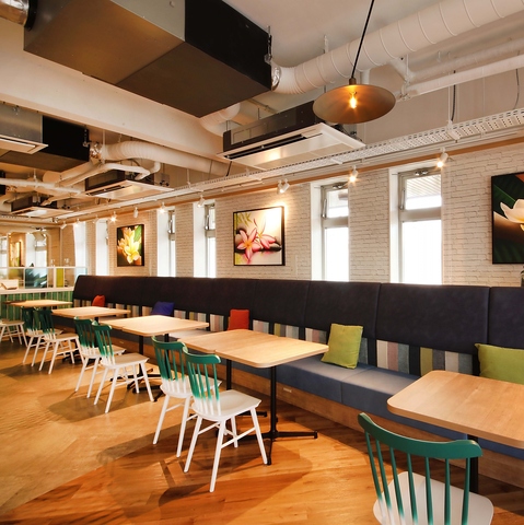 【女子会×デート利用×ご家族様人気◎】照明や飾られた絵画など細部にお洒落さを感じることができます♪また全面禁煙となっておりますので、料理の風味を損なうことなくゆっくりとお食事をお楽しみいただけます☆開放的な空間でゆっくりとお寛ぎ下さい。16時からは貸切のご予約で営業◎結婚式二次会や各種パーティーに最適