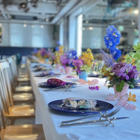 壁や仕切りがない開放的な空間は貸切パーティに最適★結婚式の1.5次会や各種宴会などパーティ演出可能です