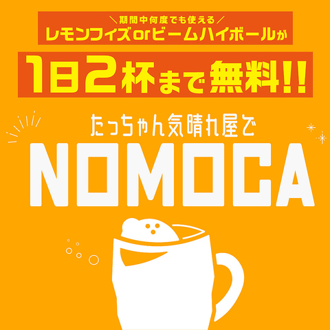 期間中何度でも使える定期券”NOMOCA"なんとレモンフィズorビームハイボールが1日2杯まで無料!