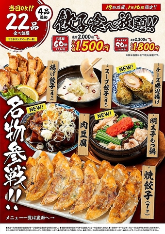 【月曜日~木曜日・18時以降1日10組限定】餃子も食べ放題!当日OKの食べ放題コースが新登場!