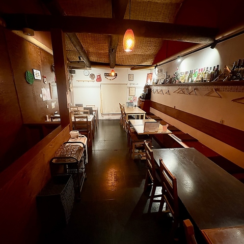 開放的な空間が広がる2階のテーブル席は、背もたれ付きの椅子でお寛ぎ出来るテーブル席が並びます。インテリアは店主の好きなものを飾っています。人数に合わせ、テーブルを繋げたり過ごしやすいレイアウトでお楽しみ頂ける様工夫しています。宴会でお探しのお客様に際しましては人数のご相談等、直接店舗までお問い合わせ下さいませ。