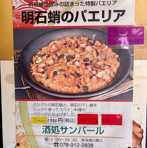 当店では香味野菜、鶏ガラ、魚介類をじっくり炒めて数時間煮込み、琥珀色のスープを作っています。パエリアは勿論、その他のお料理にもこちらのスープをふんだん使用しております。旨味の凝縮したスープで作る明石蛸のパエリアは是非とも食べて頂きたいものです!