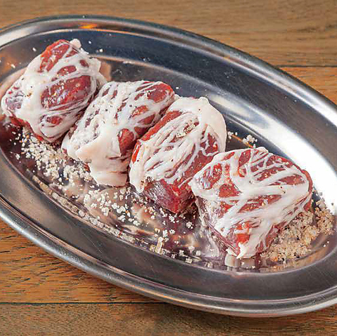 - お通し代としてお一人様380円(税込)をいただいております。(1)一般的に食肉の生食は食中毒のリスクがございます。(2)お子様、高齢者の方、その他食中毒に対する抵抗力の弱い方は生食をお控えください。