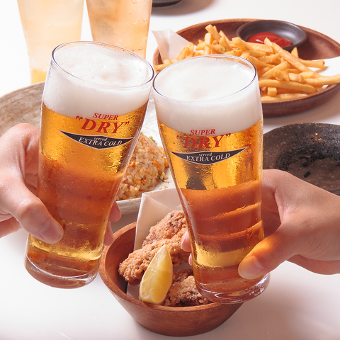 人気のあんかけ揚げ出し豆腐や様々な味のポテト、唐揚げなど全80品がなんと3時間食べ飲み放題!!!+550円でスーパードライエクストラコールド、+1100円で銘柄地酒も飲み放題☆