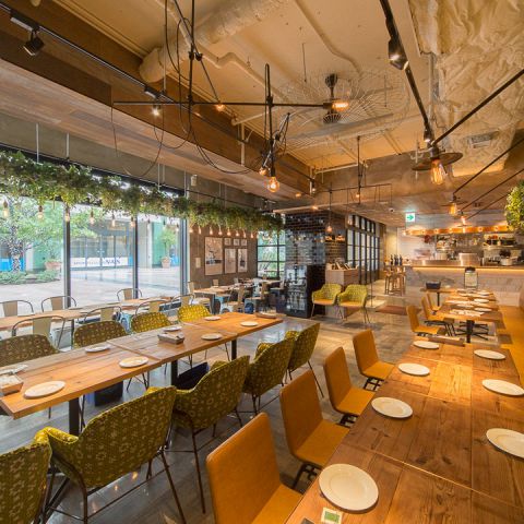 ナチュラルでおしゃれな店内は貸切利用OK!全貸切は60名様~最大120名様まで可。立食時なら150名様OK!また、半貸切なら40名様よりご利用いただけます♪ゆったりくつろげるソファーのお席や広々としたお席、そしてテラス席など、居心地の良い空間をご提供★ご宴会やパーティーはもちろん、結婚式二次会にもおすすめです!