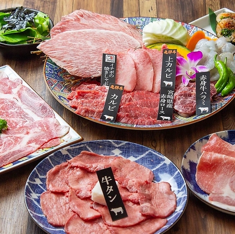 5,000円★超お得な焼肉宴会コース。自慢の飛騨牛カルビはもちろん、<生>手切りタン、和牛赤身ロースもお楽しみいただけます♪牛ざんまいのお肉を気軽に楽しめる飲み放題付きコースです。※お料理コースのみの場合、税込3,850円です。