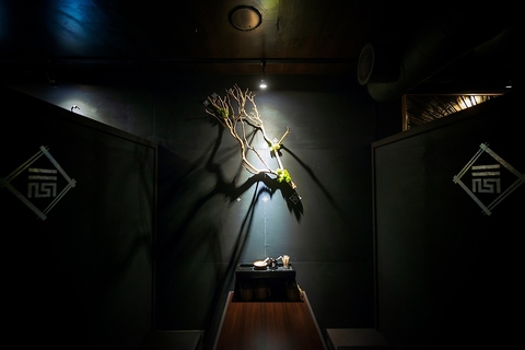 創作風な店内で黒を基調とした人目を気にしない落ち着いた雰囲気な空間でお食事を楽しみごくつろぎ下さい