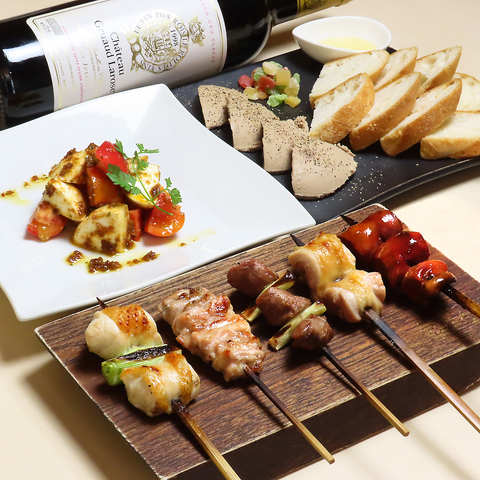 【職人が心を込めて仕上げる串焼き】一本一本丁寧に仕上げた串焼きがオススメです。厳選ワインや、日本酒でお料理をよりお楽しみいただくことができます。