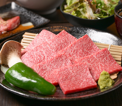 自慢の黒毛和牛を最先端のヘルシーロースターで頂く贅沢さ。この美しいサシが口の中で上品に広がっていきます。是非、ご賞味あれ♪