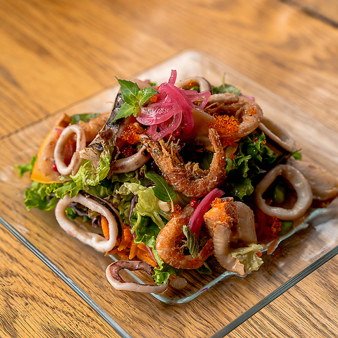 魚介やハムなどをのせた贅沢サラダ!