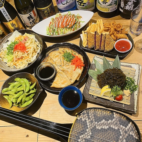 居酒屋定番のメニューも多数ご用意しておりますが、「ウチナー料理」の種類も豊富♪各チャンプル料理をはじめ、ラフテーなど様々!こだわりの沖縄料理を是非、お召し上がりください♪※写真は「グルクンの唐揚げ」です。